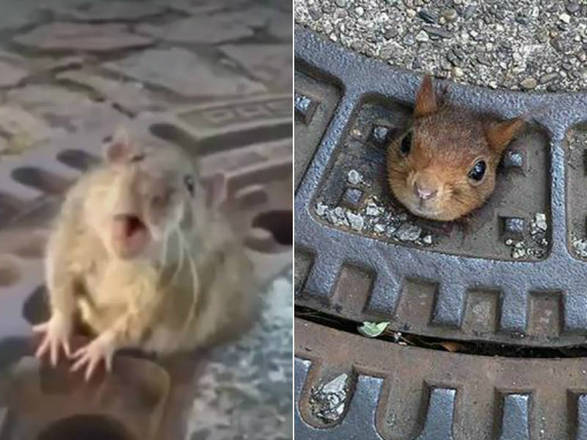 Após rato gordinho, bombeiros salvam esquilo entalado em bueiro