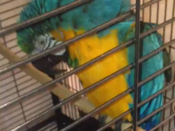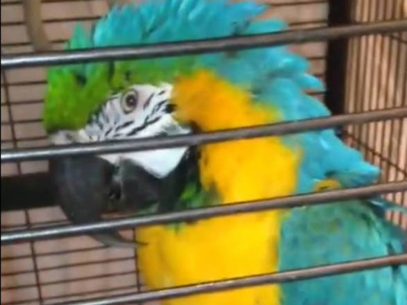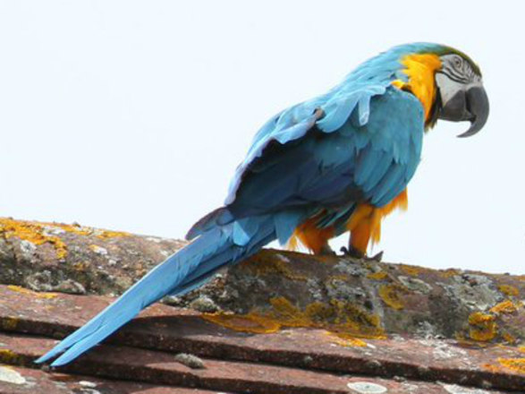 Na sequência, a arara voou para outro telhado e depois para uma árvore, afastando as suspeitas de que estaria machucada