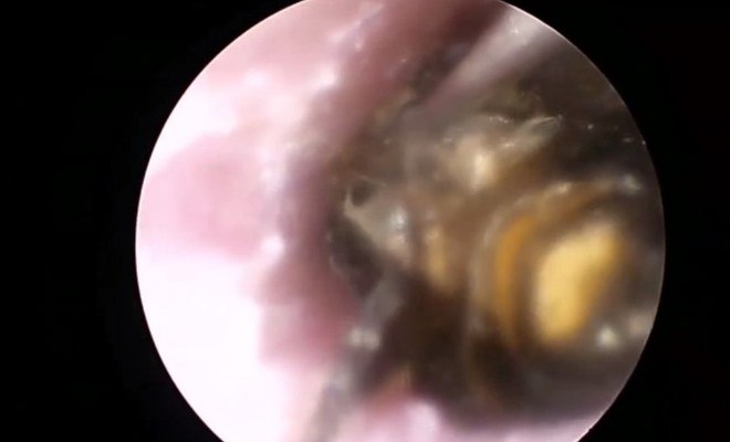 O relato médico diz que o inseto estava cavando e trabalhando no canal auditivo do homem, como se o local fosse uma colmeia