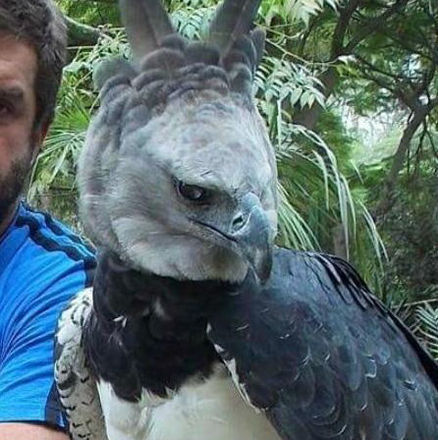 Veja essa imagem com ATENÇÃO! É uma harpia ao lado de um humano e por aí você consegue ter uma ideia do tamanho imponente desse bicho. "O que é isso? Um cara fantasiado de águia?", perguntou assustado o estagiário aqui do HORA 7, mas apesar da estranheza da imagem, essa foto é real