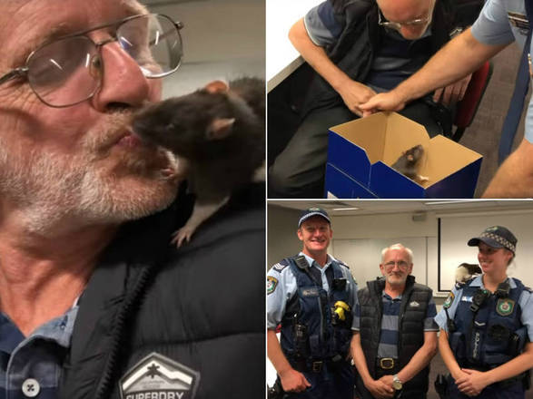 O sem-teto agradeceu os oficiais e classificou como "maravilhoso" ter a ratazana de estimação de volta