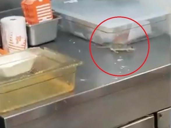 O minúsculo animal perambulava por uma balcão da cozinha do estabelecimento
