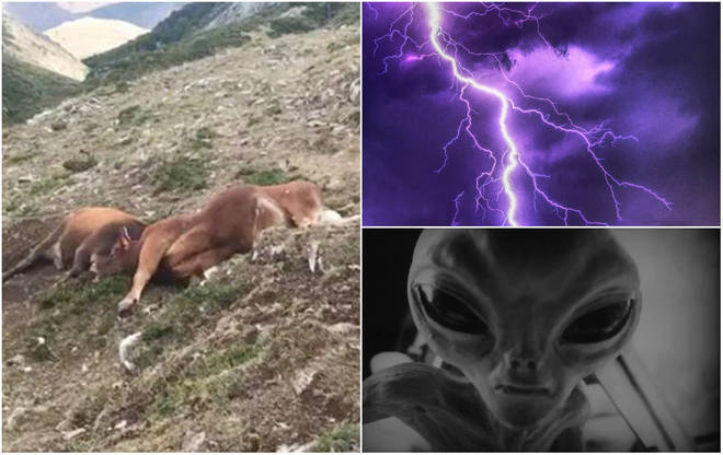 20 vacas foram mortas por um raio em uma fazenda no município de Geras de Gordon, na Espanha e levantaram suspeitas sobre um possível ataque extraterrestre. Locais afirmaram que nuca haviam presenciado um evento como esse na cidade