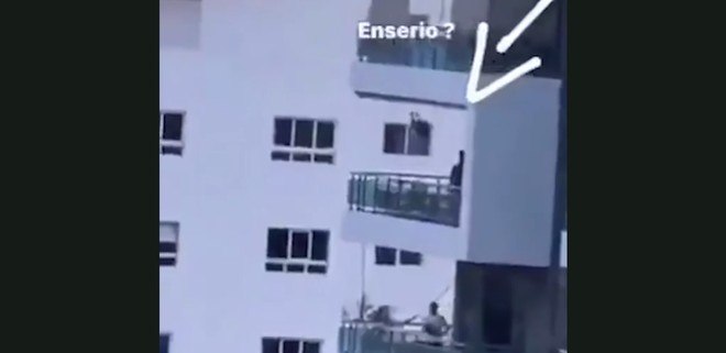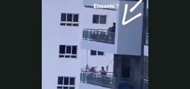 Uma imagem chocante foi registrada em Porto Rico: um pai empurrando uma criança em um balanço na varanda do apartamento