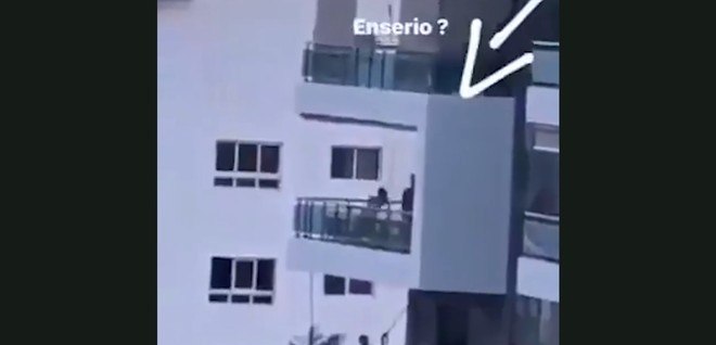 Em um vídeo chocante feito na região de Playa Paraiso, em Tenerife (Espanha), uma criança anda no beiral de um prédio enquanto sua mãe estava no chuveiro