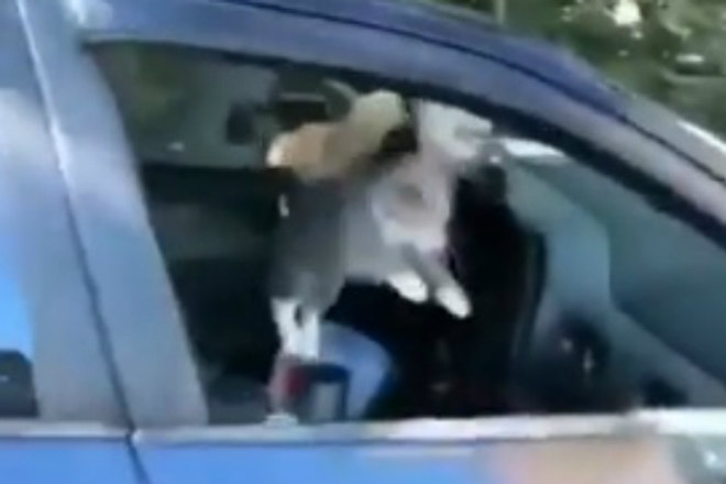 Uma gangue de gatos ensandecidos aproveitou a janela aberta de um carro para promover um verdadeiro caos dentro dele