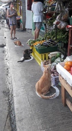 O jornal Philippine Star divulgou três fotos que mostraram que gatos estão perfeitamente preparados para um futuro onde necessidades de distanciamento social serão comuns. Na imagem, eles se posicionaram perfeitamente em círculos feitos em calçadas, com objetivo de organizar filas em mercados