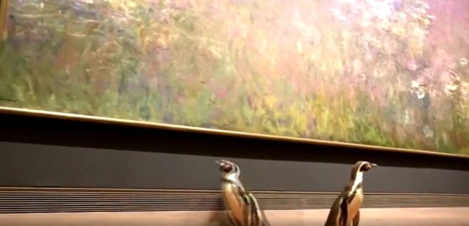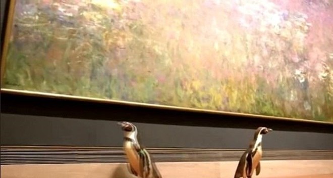 Nas dependências do museu as aves contemplaram belos quadros de Monet...