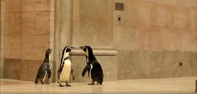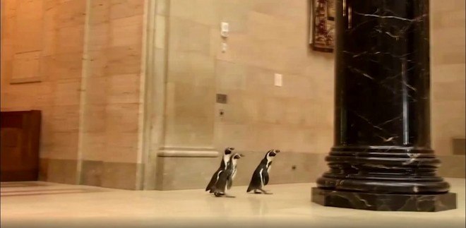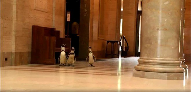 "Assim, vários dos pinguins decidiram fazer uma viagem de campo ao Nelson-Atkins, que ainda está fechado, para obter um pouco de cultura"