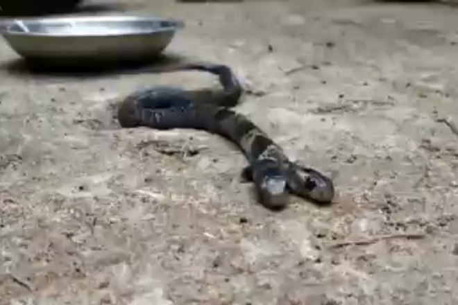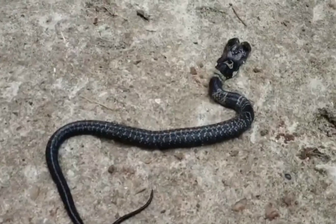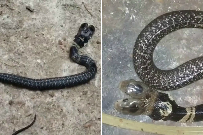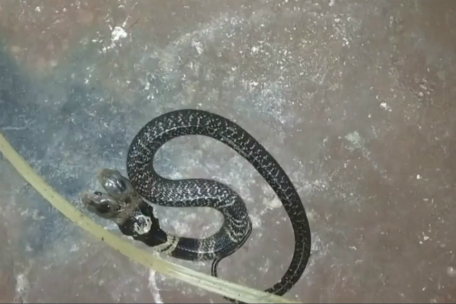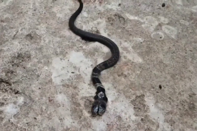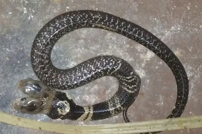 Uma cobra de duas cabeças foi encontrada em uma floresta próxima à cidade de Ekarukhi, na Índia