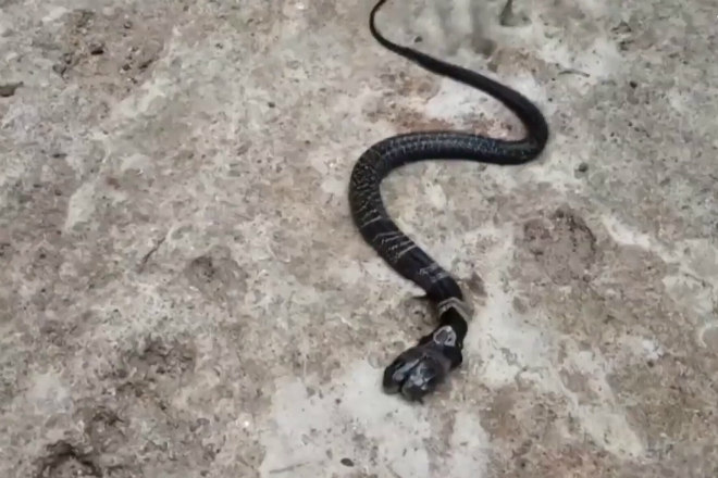 Leia mais! Cobra venenosa vai a óbito após ser mordida por motoqueiro bêbado