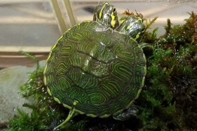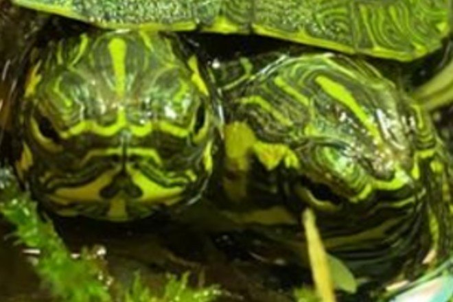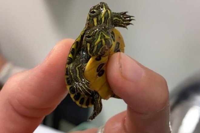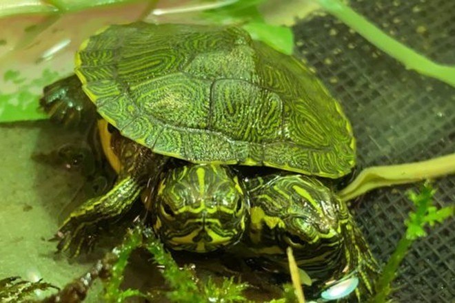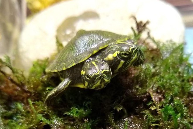 Uma tartaruga com duas cabeças foi doada ao Virginia Living Museum, em Newport News, nos EUA, após ter sido achada na natureza por um membro da comunidade