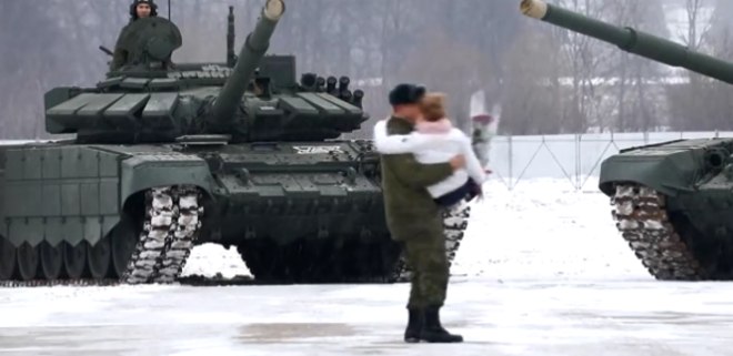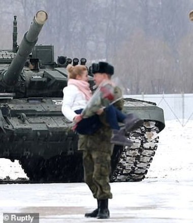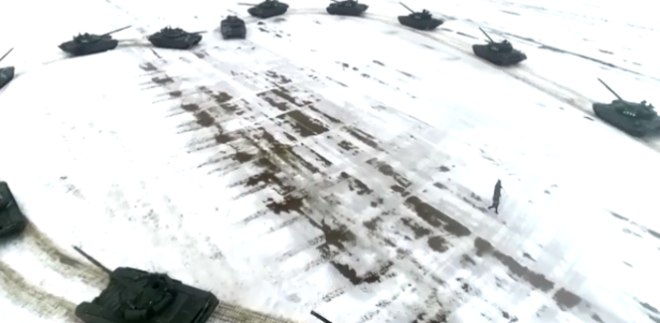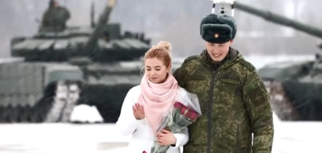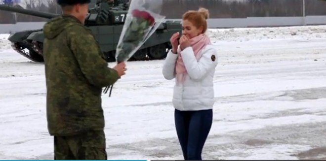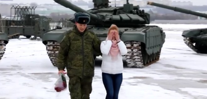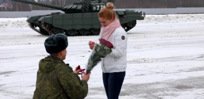 Um tenente do exército russo usou 16 tanques para formar um coração antes de propor a sua namorada encantada - que aceitou o pedido (ainda bem)