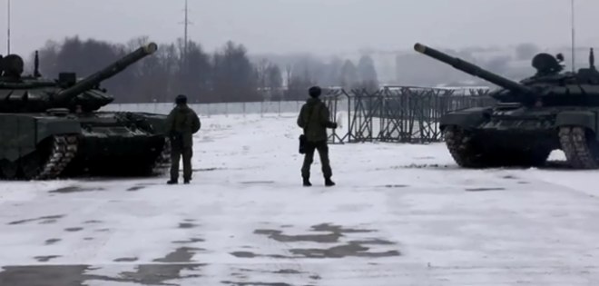 No vídeo, os tanques são vistos sendo posicionados
